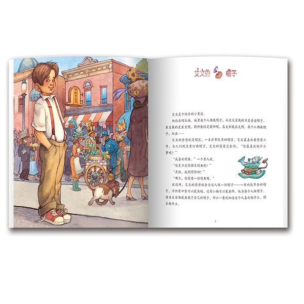 《艾文的帽子》通过一个精彩的故事展示了一个特别的真理——每个人被造都有一个特别的目的。艾文的爸爸是个帽匠,艾文看到爸爸为了每个人都制作了非常适合和精美的帽子。但当艾文开始担忧自己的未来的时候,他却尝试了各样的帽子——厨师帽、农夫帽、音乐家帽、教师帽、小丑帽……没有一顶适合他。他感到沉重和劳累。当一天结束的时候,爸爸智慧的话语将一切乌云拨开,有一顶帽子,一种生活最适合他——他最喜欢什么。强烈推荐此书!